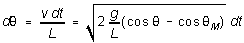dt the distance that the mass moves is v dt. The angle through