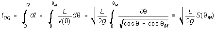 Rearranging this and integrating it, we can find the time the pendulum takes to swing from O to Q: