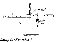 Preliminary Measurements: The measuring bar has holes numbered 1 through 13. Please measure the distance from hole 1 to each of the other holes. Estimate distance to at least the nearest mm, and possibly to the nearest 1/2 mm. ( In the suggested procedure which follows, holes 1,4,5,6,7,9,11, and 13 will be used, so you may be able to get by with measuring just these.) Each station has a mass of 400-500 grams which will be suspended by a hanger during the experiment. Be sure to measure this mass. You will also need the mass of the measuring bar, the curved brass hanger (about 10 gm) and the scale itself (around 47 gm).