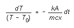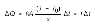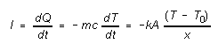 where dT is the change in temperature T of the cylinder and lower surface of the insulator in time interval dt. Assuming the upper surface of the insulator is held at a constant temperature T0 we can determine how the temperature T of the bottom surface of the insulator depends on time, as follows: