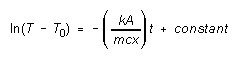 So if we measure the temperature T of the aluminum cylinder as a function of time t, and draw a graph of Y = ln(T - T0) versus X = t, we should get a straight line of (negative) slope -kA/mcx. The thermal conductivity of the insulating material, k, may be determined if we know the mass m and specific heat capacity c of the aluminum cylinder, and the thickness x and cross-sectional area A through which heat is conducted in the insulator.