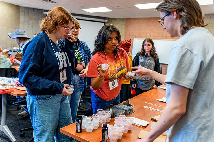 Each year, Rose-Hulman professors and math and biomath majors invite high school students to campus to participate in engaging and interactive sessions that focus on applications of mathematics. This event, which is open to all students who are currently in a high school level mathematics class, pays tribute to Sonia Kovalevsky – a pioneer for female mathematicians.