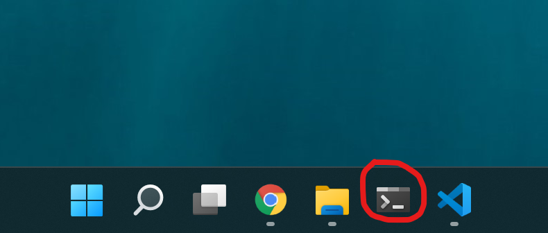 Open your Windows Terminal. Ideally, you want to pin this app to the taskbar as we will frequently use it in this class. For example, my taskbar looks like this