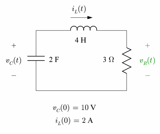 Determine the initial value of vR(t) and dvR(t)/dt, and the final value of vR(t).