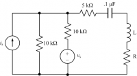 Determine settings of R and L that will result in the maximum average power transferred to R if is = 1 cos(1000t) mA and vs = 30 cos(1000t+30°) V. What is the maximum average power transferred to R?