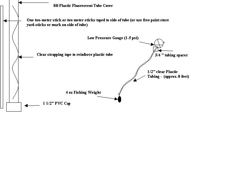 8 foot fluorescent tube cover 4 oz lead sinker 2 -metersticks or tapemeasure 1/4 inch tubing (optional) Pressure gauge 1-3 psi Pvc end-cap