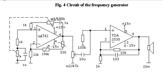 The Ripple Generator uses fluctuant air blowing driven by a loudspeaker to transmit, via air blowing tubes, the oscillations of the loudspeaker's diaphragm to the surface of the water. It can be used to demonstrate wave propagation, interference and some other experimental phenomena. By covering the loudspeaker with a gasket and plastic board as shown in Fig. 2, an air chamber is formed in which the air pressure will fluctuate with the vibration of the loudspeaker's diaphragm. Then, using air in such a chamber to blow the water will generate water waves. The frequency generator should have a frequency range from 1 Hz to 100 Hz and the SE-9698 Basic Function Generator made by PASCO is suitable for the experiment. However, we made a special frequency generator for this experiment with very low cost. Fig. 4 shows the circuit arrangement.
