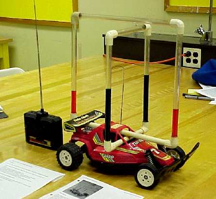 Radio-controlled cart and fluid tubes as acceleration indicators.