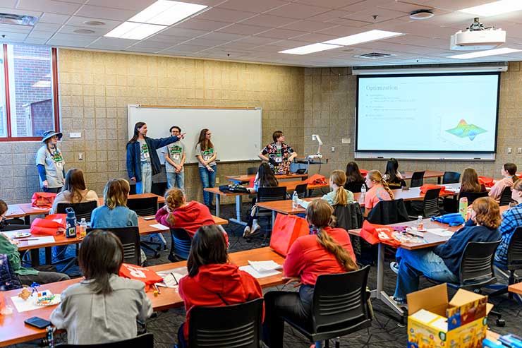 Each year, Rose-Hulman professors and math and biomath majors invite high school students to campus to participate in engaging and interactive sessions that focus on applications of mathematics. This event, which is open to all students who are currently in a high school level mathematics class, pays tribute to Sonia Kovalevsky – a pioneer for female mathematicians.