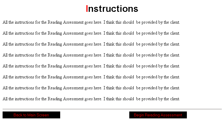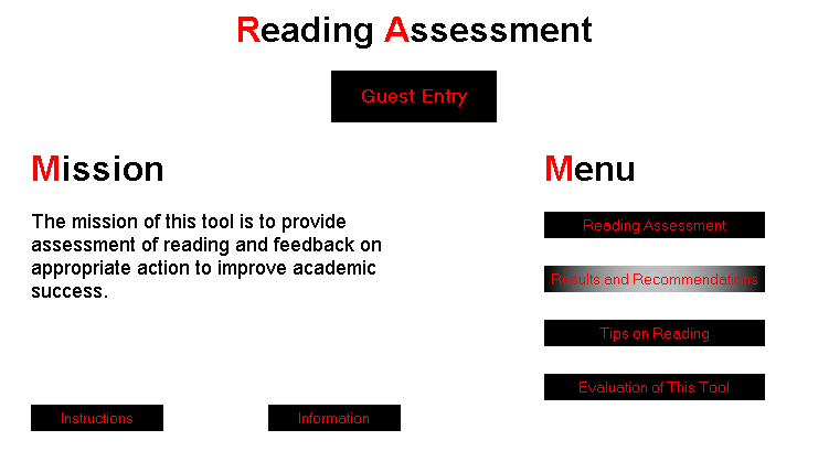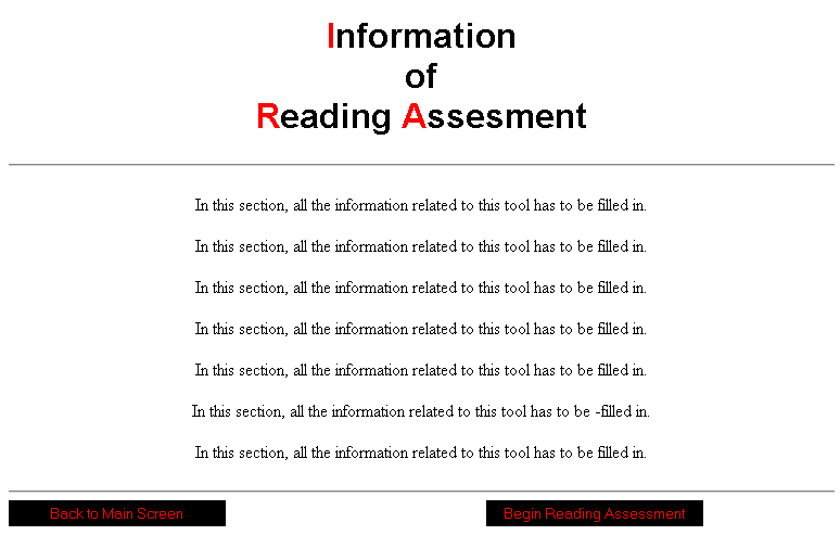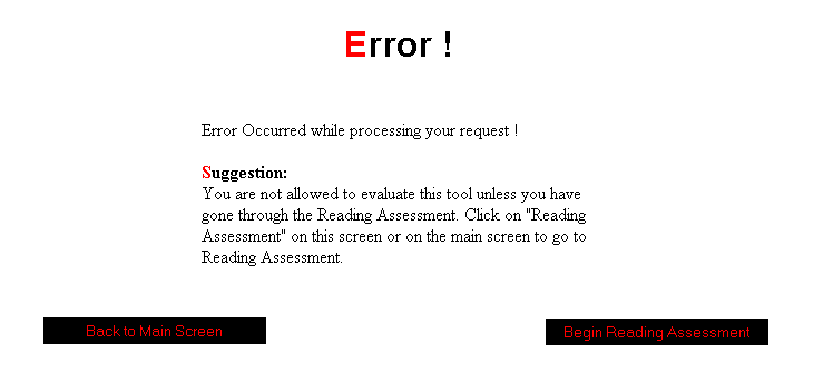 - Error: User clicks on "Evaluation of This Tool" at the Main Screen (2.2.1) before completing the test on "Reading Assessment" Screen