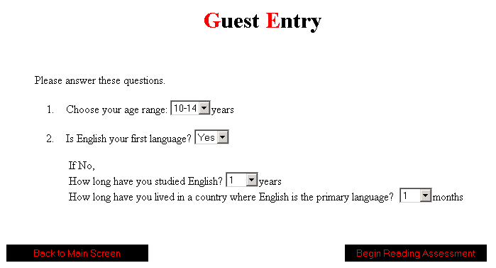 - Error: User clicks "Reading Assessment" menu at the Main Screen (2.2.1) before filling out the guest entry form of Guest Entry Screen (2.2.2).