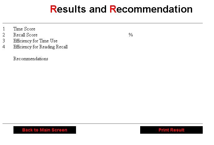 (message of recommendation to the user according to the Efficiency for Time Use or the Efficiency for Reading Recall should come up here. wording is provided by client)