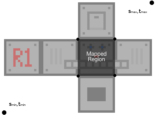 In the example below, the UV coordinates map into the ST texture space, defining what part of the texture maps to the model surface.