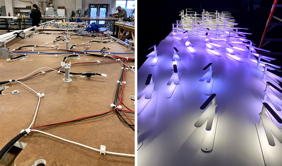 Standing at 30 feet tall, the "Depth of Field" artistic exhibit is located in the new Fowler Academic Building opening for the 2021-22 school year. Adam Buente and Kyle Perry of Project One Studio share the details of how this stunning interactive exhibit was created.