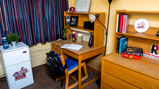 In regard to room setup, most freshmen rooms throughout each of the residence halls are approximately the same in size and setup. Rose-Hulman will also provide the following furniture for each student:
