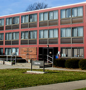 Scharpenberg Hall is a four-story brick residence hall opened in 1967 on the northwest side of campus adjacent to Mees and Blumberg halls. Each floor is built in the shape of an "H" containing 12 two-person rooms to accommodate 71 students. The hall is air-conditioned and features a lounge area, laundry room and vending machines.
