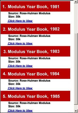 For questions or comments about this site, contact Richard Bernier. Rose-Hulman Institute of Technology - Logan Library - 5500 Wabash Ave., Terre Haute, IN 47803 Phone: (812) 877-8200 Fax: (812)877-8175