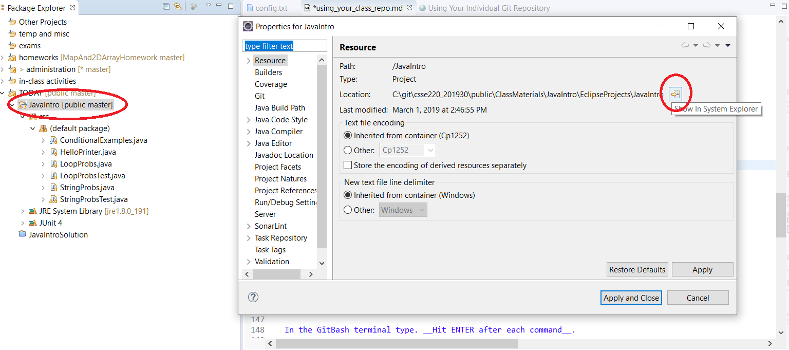 Important We will be posting assignments and grader feedback throughout the term. To ensure you have the latest assignments and feedback, right click on your newly cloned repo (or last imported project from that repo) and select “Properties”.