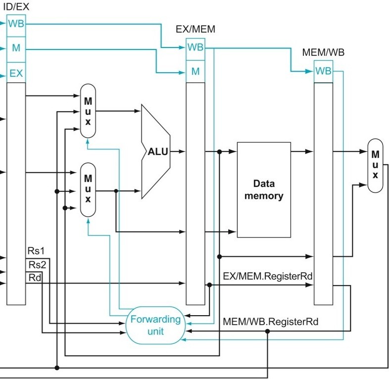 • the instruction in MEM is writing rd and the instruction in EX has read the same register as rs2.