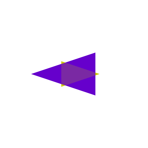 Depth testing is enabled and the purple triangle is closer than the yellow.| Blending function (s,d) | ||||