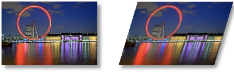 Find a 2×2 transformation matrix that skews or shears the image so the top row of pixels is shifted over by 1/4 of the image’s height.