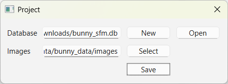 File -> New Project.Downloads/bunny_sfm.db.) Click