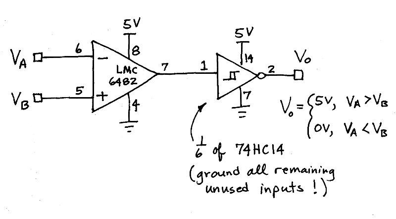The LMC6482 rail-to-rail single-supply op amp serves as the voltage comparator, and has the following characteristics: