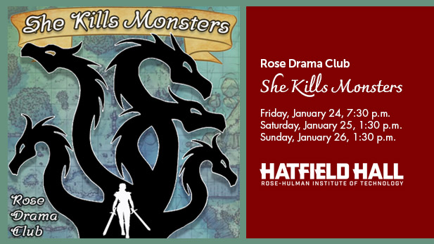 “She Kills Monsters” is the Drama Club’s winter production, taking place this weekend at the Hatfield Hall Theater. Performances are Friday, January 24, at 7:30 p.m., Saturday, January 25, at 1:30 p.m., and Sunday, January 26. at 1:30 p.m. Tickets are $15 per show.