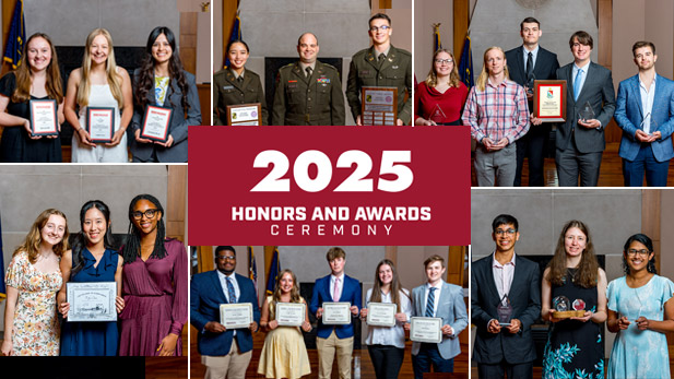 In the final week of the 2024-25 academic year, more than 110 undergraduate and graduate students were recognized for their scholastic, leadership, character, and potential for career success in this year’s Honors and Awards Ceremony at the Hatfield Hall Theater. The list included 72 scholars achieving top-of-class academic status.