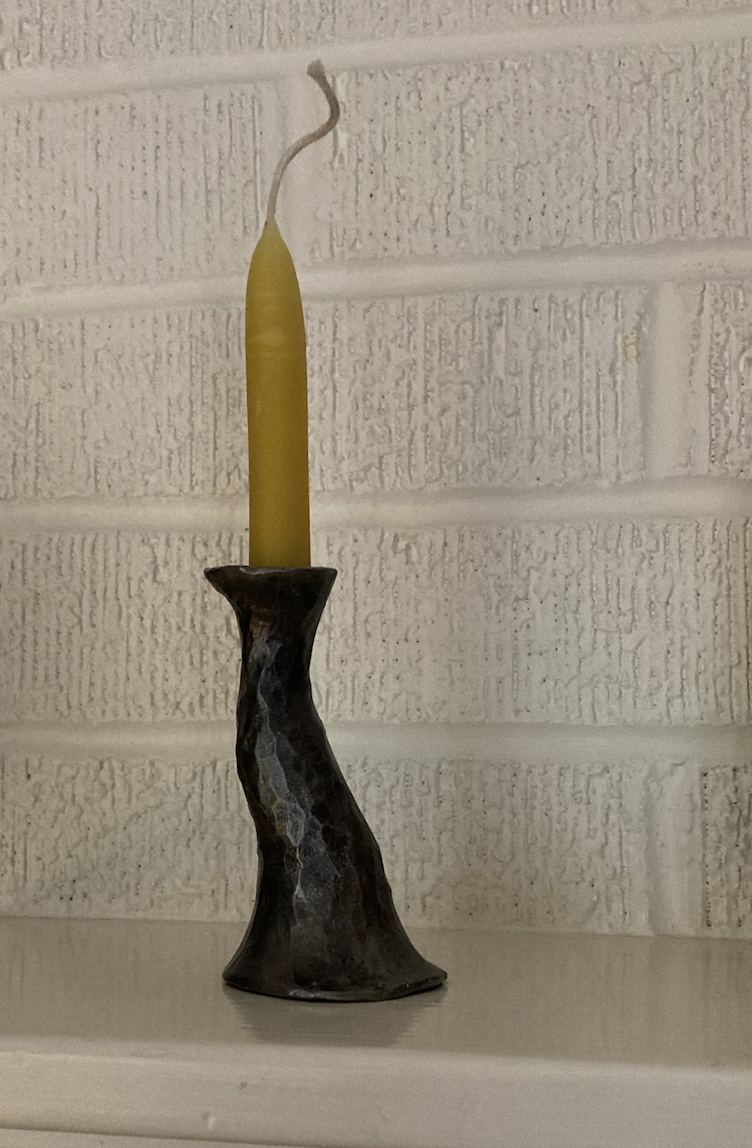 Here too, I opened up the hole, as before, but not as large. I continued to open up what will be the bottom of the candle holder and I made some adjustments to the shape of the holder, to ensure it stands firmly on the ground. I drilled the hole for the candle with a 9/16 drill bit so the candle fits neatly into the candle holder. Some brushing to remove the scale and some semi-gloss clear coat and the candle holder was done.