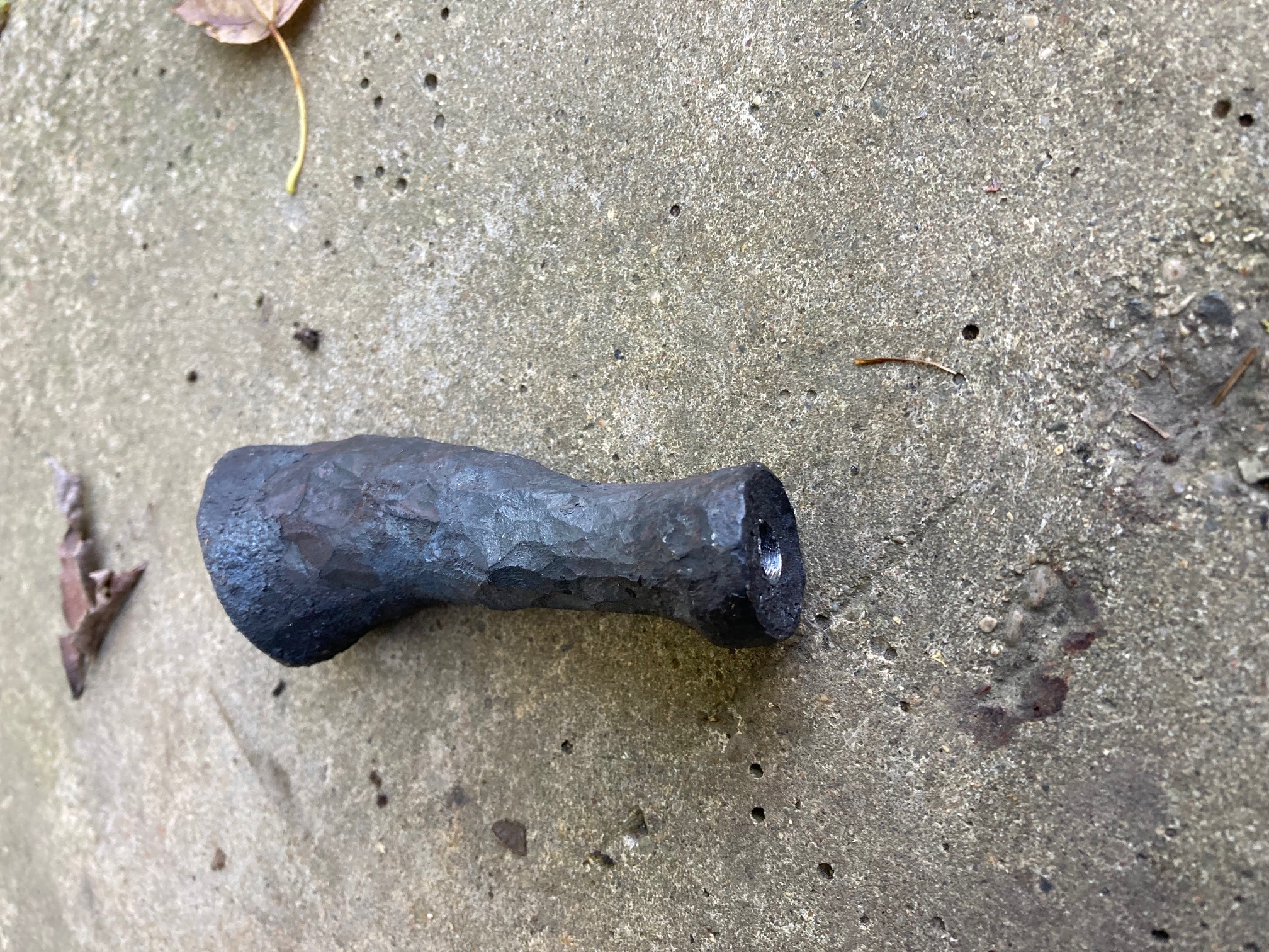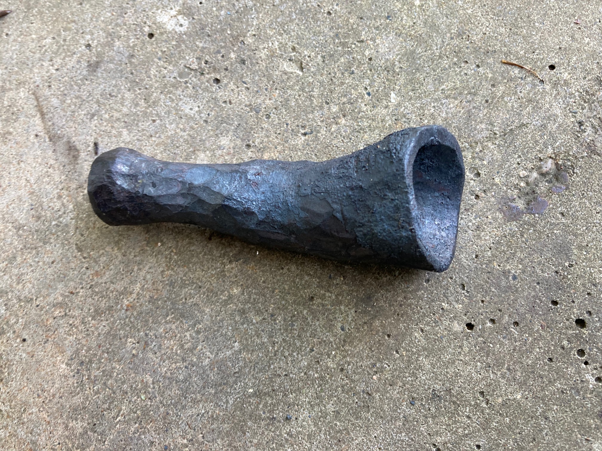 Then, I opened up the hole on a cone shaped hardy tool and the horn of the anvil: