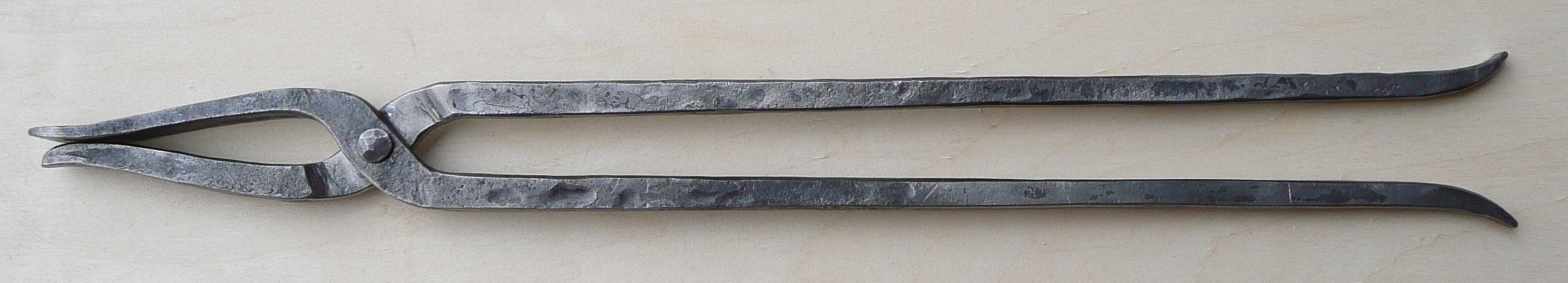 I saw an image of those tongs in a wood-cut dated back to 1597. To understand how they work, I studied the picture and built a prototype. Here are construction notes. Here is the German version of this article which appeared in the editon of Hephaistos.