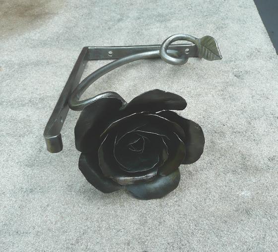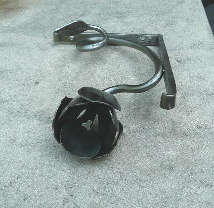 My wife loves flowers. We are running out of windowsills on which to place them. I purchased a piece of lumber and used some of my woodworking clamps to hold it to the existing windowsill. However, I would like to have my clamps back, so I started making some brackets. The rose is brazed to the stem and the tulip is screwed to the stem, where the stigma acts as the nut and the stem as the bolt.