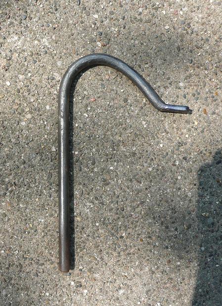 I made this holdfast from an old tire iron. It fits into the pritchel hole and is an excellent tool for holding things on the anvil, say for punching. Due to the spring action, it does not shake loose when pounding on the item to be held. I learned about this tool from the book "Just an Idea" by Les Stanley.