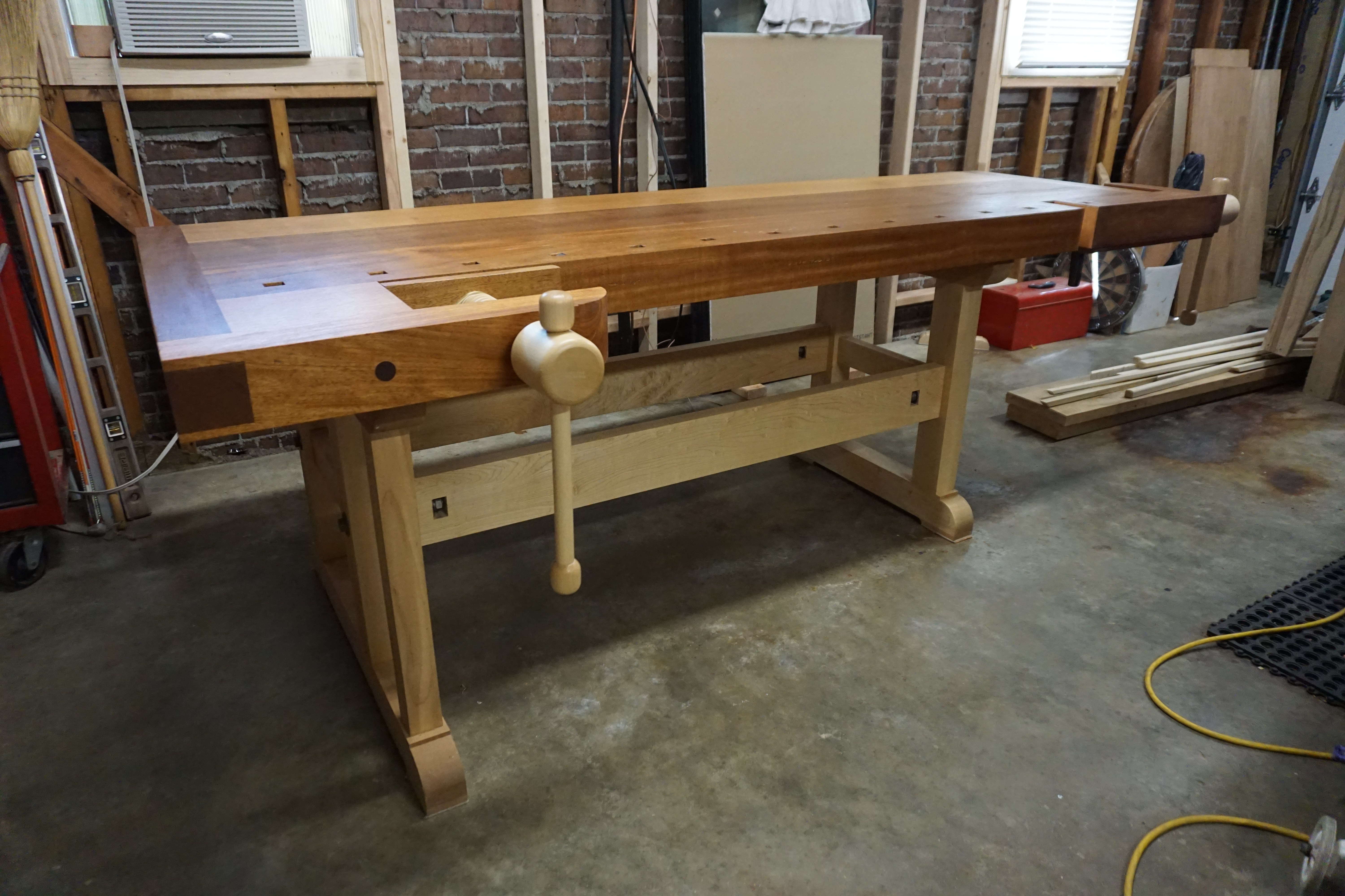 The use of a non-sandwiched construction meant that I had to drill and chisel the 12+1 dog holes. Not a big problem.
